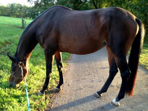 Ich gehe jetzt abends immer vor dem Misten raus, damit ich wenigstens noch etwas Tageslicht erwische. 😉 Galdina konnte es heute wieder kaum erwarten hinauszugehen. Kaum auf der Straße angelangt, musten wir schon wieder anhalten um ein Auto durchzulassen. Dieses fuhr zügig direkt neben uns durch eine Pfütze! *grr* Dina flippte kurz aus und selbst ich war kurzzeitig unentspannt. Danach ging es halbwegs gesittet weiter, an der Koppel wurden wir wiehernd empfangen und anschließend galoppierend begleitet. :-/ *puh* Auch Fußgänger sind schlimm: vor uns müssen sie sofort und schnellstmöglich eingeholt und überholt werden, hinter uns müssen wir ganz schnell einen gaaanz großen Abstand zwischen uns bringen… Oh Mann, dieses Pferd hat echt Langeweile! Ah und Jogger sind noch schlimmer: Die dürfen laufen! Das geht doch gar nicht!!! Aber ich bin immer dankbar, wenn Galdina sich auf den letzten 5-7 Minuten wieder entspannt und wir ruhig in den Stall zurückkehren.