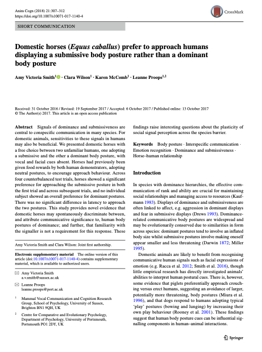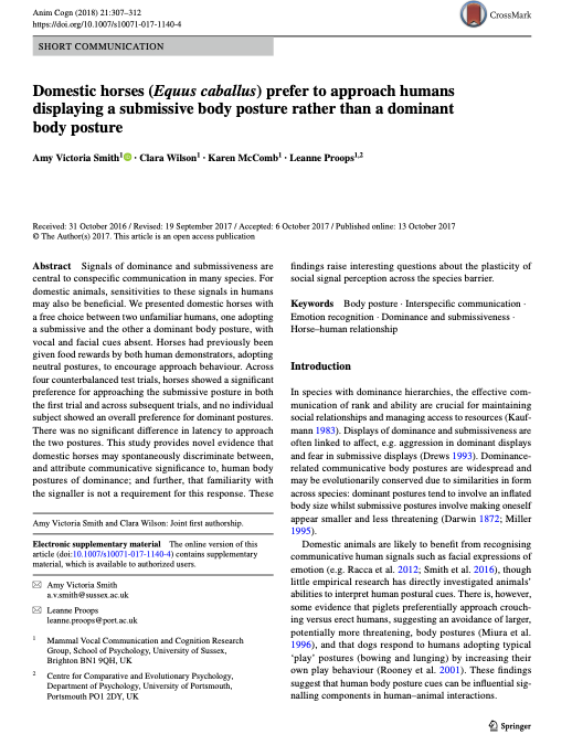 Domestic horses (Equus caballus) prefer to approach humans displaying a submissive body posture rather than a dominant body posture