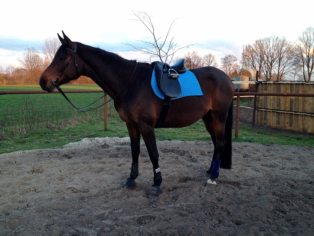 Die Tage werden länger und ich konnte heute komplett ohne Kunstlicht reiten. 🙂 Galdina lief durchwachsen, teils wirklich gut (ruhig), teils hat sie wieder übertrieben und wurde sehr eilig. Mir ist aufgefallen, das ich meine Hilfen auf den verschiedenen Händen unterschiedlich gebe. 🙁 Werde da jetzt mein Augenmerk drauf legen, da ich vermute, dass hier das „Problem“ für Dinas nach Innendrängen auf der rechten Hand begründet liegt.