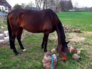 Heute sind wir mal zu viert (zwei Zweibeiner und zwei Vierbeiner) an der Hand ins Gelände spazieren gegangen. Und wieder war Galdina sehr ruhig, teilweise war das Pony(!) schneller als sie… Am Ende durfte Dina dann auch wieder ungestört ein paar Minuten grasen.