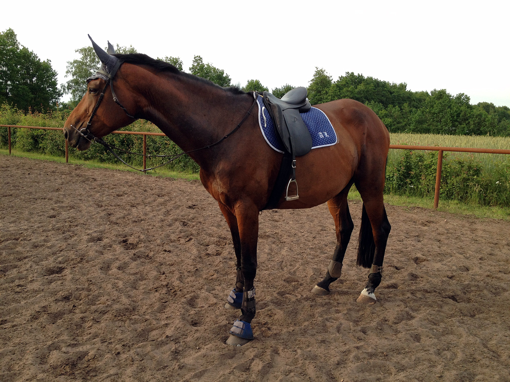 - Galopp – Rechtsgalopp Tempo gut, Linksgalopp anfangs zu eilig, im Verlauf besser, Probleme mit Biegung