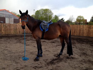 Da es die letzten Tage gut geregnet hat, war der Round Pen ideal. Heute habe ich angefangen meine Theorie bezüglich Galdinas Verhalten zu prüfen. Sprich ich habe Dina mit Sattel und Knotenhalfter ins Training geschickt. Sie lief sehr ruhig, von einigen kleinen Aussetzern auf Grund des Wetters (Sturmböen, Regen) und der Pferde im Offenstall abgesehen. Also scheint nicht der Sattel das Problem zu sein.