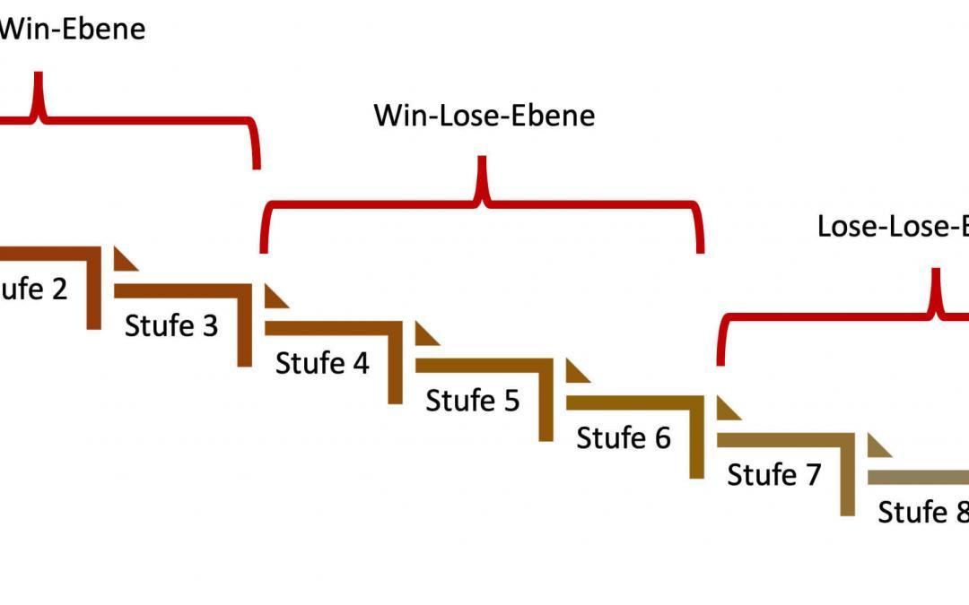 Lesezeit: 3 MinutenDas Modell der Eskalationsstufen, oder auch Stufenmodell der Eskalation oder Modell der Konfliktstufen, geht auf Friedrich Glasl zurück. Es hebt den destruktiven Charakter von Konflikten hervor – ganz nach dem Motto der letzten Stufe...