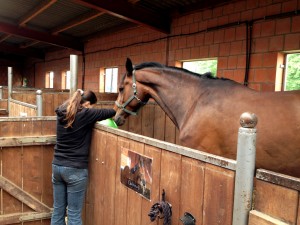 Galdina ist anfangs im Galopp nur gerannt. Irgendwann fing sie an abzuschnauben, von da an wurde es wieder ein normales Tempo. Vielleicht musst das einfach mal sein, da der Paddock immer noch ziemlich tief ist und Dina sich nicht so wie gewohnt bewegen kann… Ich hoffe morgen können wir wieder besser miteinander arbeiten / kommunizieren.
