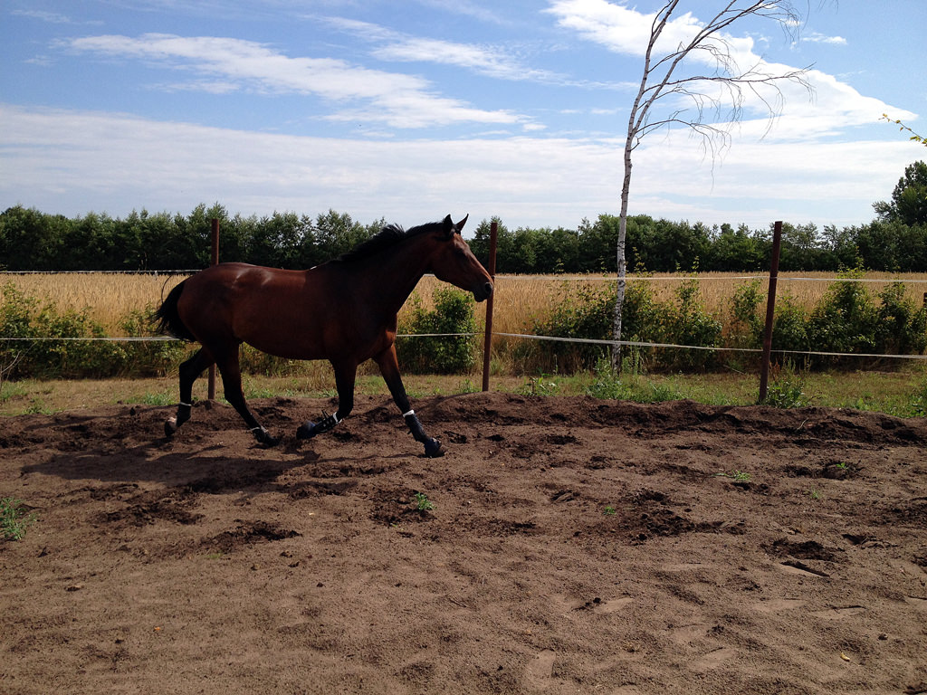 Galdina läuft lahmfrei. Ohne die Fliegendecke ist sie allerdings wieder total kopflos und reagiert nicht auf meine Signale.