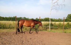 Ich habe Galdina heute nur wenig und dann in einem ganz ruhigen Trab gearbeitet. Und das auch nur auf großen Linien. Als Kopfarbeit habe ich mich für das Weichen der Hinterhand im Schritt in der Bewegung entschieden. Es war eine neue Übung und da ich immer nur wenige korrekte Schritte verlangt habe auch nicht allzu anstrengend für Dina. Sie hat sehr gut mitgemacht und war heute auch wieder besser drauf. 😉