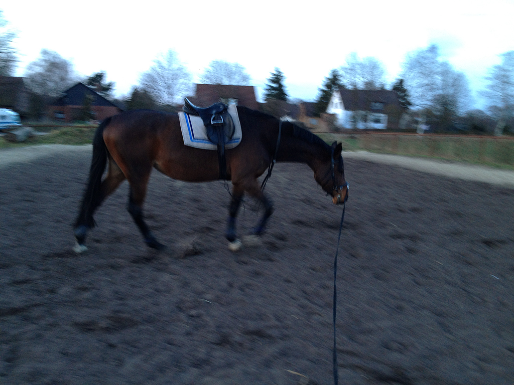 Ich hatte das Gefühl das Galdinas Hinterbeine heute wieder angelaufen sind… Von daher habe ich Dina nur ein paar Runden traben und locker galoppieren lassen.
