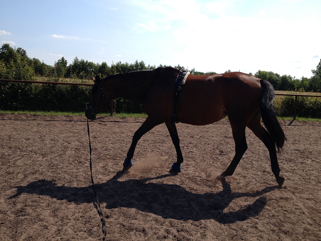 Schritt, Trab und Galopp mit Kappzaum, Ausbindern und Longiergurt auf dem Außenplatz