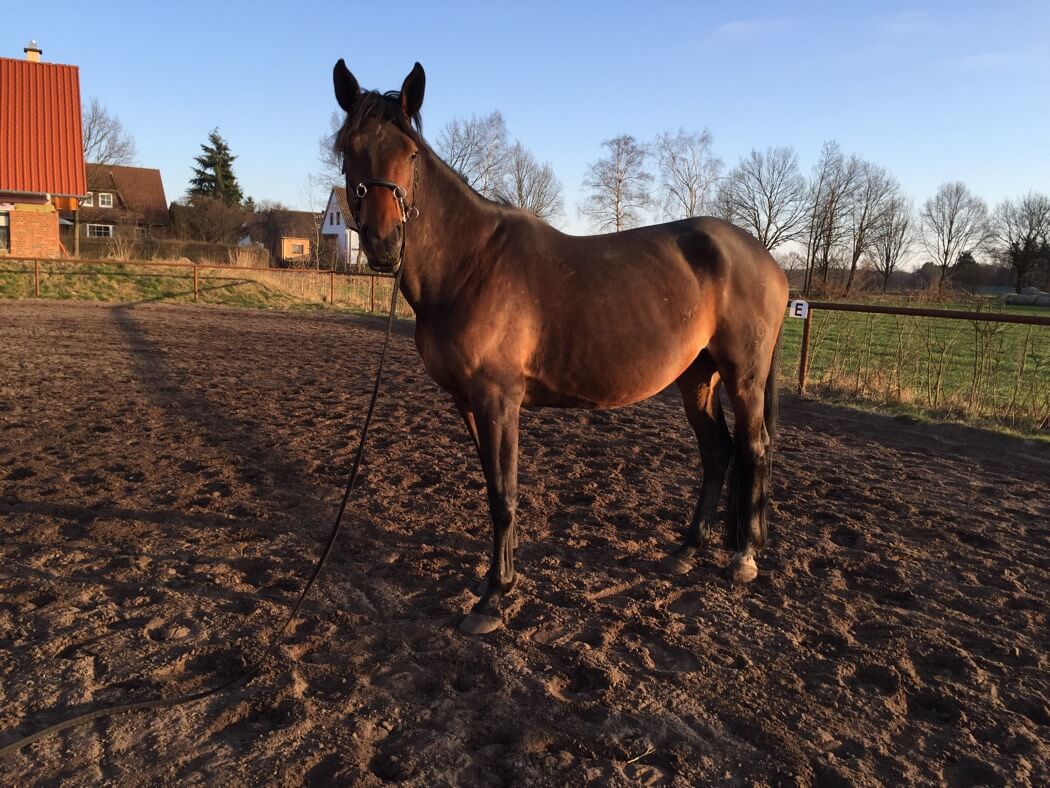 Der Tierarzt kommt nach dem Wochenende, mal sehen, was er sagt. Wir haben einfach ein bisschen weitergemacht mit Longieren. Bewegung an der frischen Luft kann nie schlimm sein. Da wir ohnehin gerade nicht so viel machen, da ich sie erst wieder antrainiere, kommt Dina auch nicht ins schwitzen.