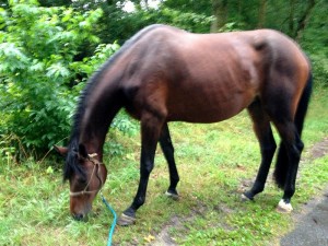 Leider ist das Dach immer noch nicht wieder dicht, so dass überall Bottiche und Schalen stehen, um dem Regenwasser Herr zu werden. Aber das gestaltet das Misten und Einstreuen auch interessanter, da man sich jetzt im Slalom darum herum bewegt. 🙂 Galdina und ich sind nicht aus Zucker, also habe ich mir nur eine Regenjacke angezogen und bin dann wieder mit Dina raus. Es schien nicht so rutschig zu sein wie befürchtet, zumindest ist Dina nicht gerutscht, was sie auf trockenen Boden öfter hinbekommt. Insgesammt war sie heute wieder unruhiger als gestern. Und nein, nicht mal beim kurzen Stop kann sie still halten… 😉