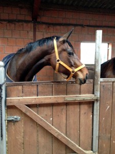 Leider hat heute das Wetter nicht so gut mitgespielt. 🙁 Pünktlich zum Beginn unserer Trainingseinheit begann es erst zu nieseln und dann zu regnen. Galdina hatte eine Decke drauf und ich meinen langen Mantel, beides wetterfest. Zunächst ging es im Schritt mit Schulterherein zum Aufwärmen los. Es folgten einige Runden im Trab auf großen und kleinen Zirkeln und schließlich Galopp auf großen Linien. Der Galopp ist herrlich anzusehen, Dina springt ruhig und guter Haltung. 🙂 Der Trab danach ist, wie unterm Sattel, leider sehr eilig, nur das ich am Boden durch meine Körpersprache bzw. kurze Impulse sehr gezielt und direkt einwirken kann und Dina auch wesentlich besser reagiert. Da wir dann doch beide ziemlich nass wurden, habe ich nach kurzer Zeit aufgehört. Galdina hat sehr viel geschnaubt, aber nicht gehustet. Insgesamt schien sie sehr zufrieden zu sein.