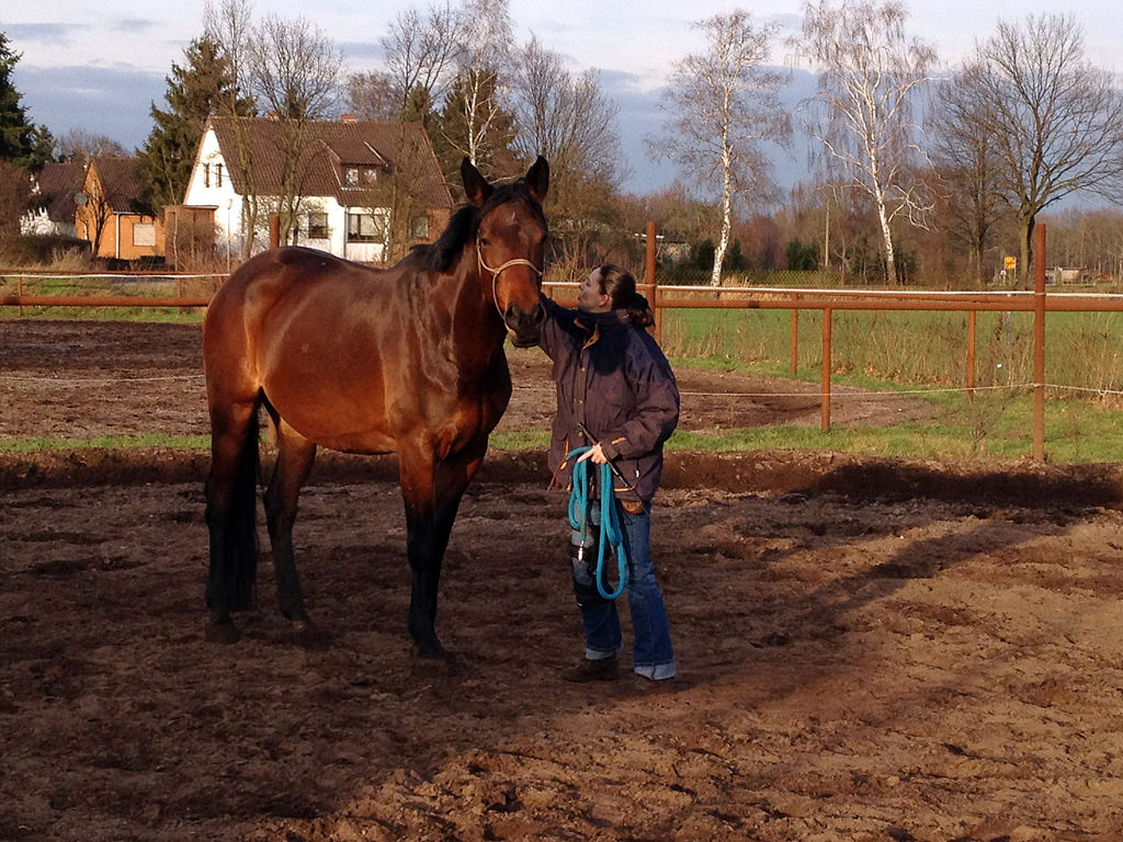 Heute ging es wieder in den Round Pen. Im Prinzip ging es nur um vorwärts, rückwärts und seitwärts und das alles mit minimalen Gesten. Galdina reagiert schon ganz gut, aber ab und an ist sie noch etwas verwirrt und bietet mir etwas anderes an als ich verlangt habe.