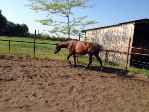 Galdina ist lahmfrei. Allerdings ist sie so gestreßt ohne Decke, das sie nur trabt oder galoppiert. Ruhiges, konzentriertes Arbeiten ist damit nicht oder kaum möglich.