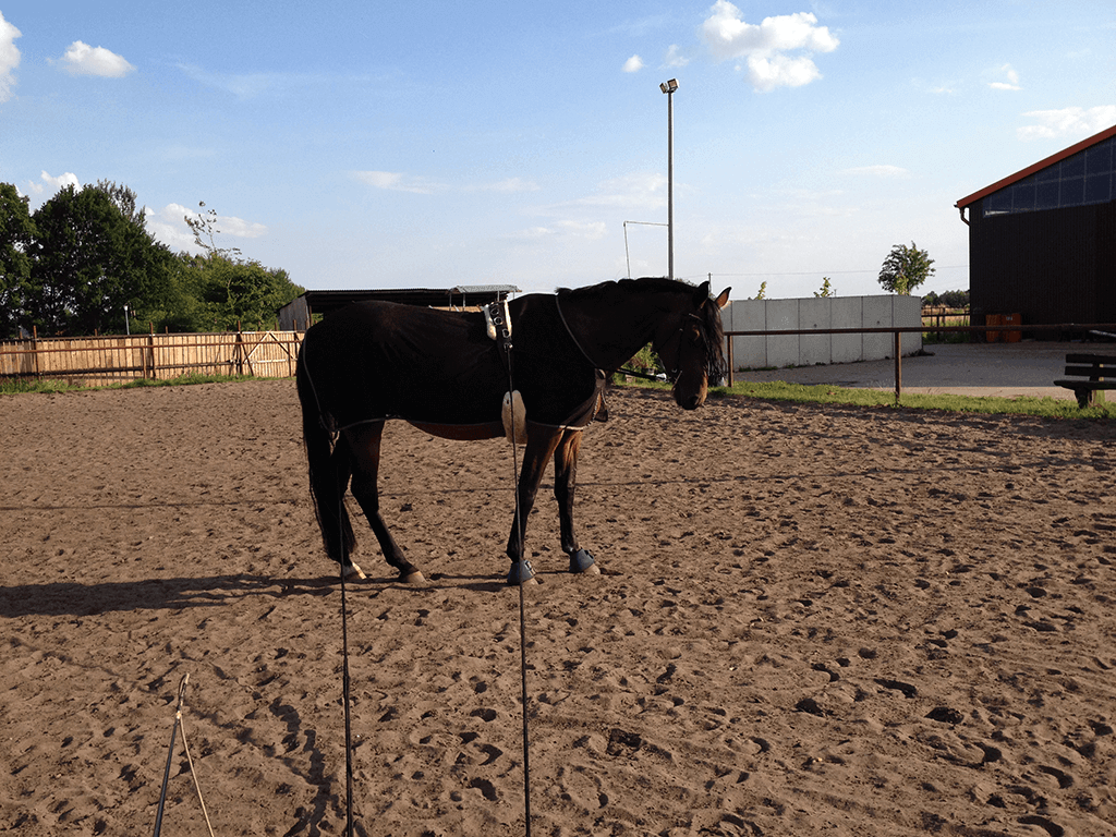 Markus war heute da und hat sich um Galdinas schiefes Eisen gekümmert. Das bedeutet Eisen ab, richten im/unter Feuer und abschließend wieder aufnageln. Davor waren wir kurz auf dem Aussenplatz um an der Doppellonge etwas Schritt und Trab zu üben. Dina schien aber noch sehr müde vom Training gestern zu sein. (Außerdem haben wir fast noch 33 Grad im Schatten und das um diese Uhrzeit!)