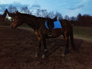 Ursprünglich wollte ich heute wieder die Trabarbeit üben, aber durch äußere Umstände, waren Galdina und ich so abgelenkt, dass wir stattdessen am Schritt gearbeitet haben. Dina hat einen supe Schritt, aber sie tendiert auf der rechten Hand mit der Hinterhand nach innen zu „fallen“. Das habe ich heute konsequent korrigiert und gelobt, sobald Dina „eingelenkt“ und auch nur ansatzweise eine von mir gewünschte Reaktion gezeigt hat. Zum Ende lief Dina am hingegebenen Zügel auf beiden Händen gerade ohne nach innen zu schwanken. 🙂 Aber ich denke, dass war nur ein Teilsieg und wir werden das weiterhin üben.
