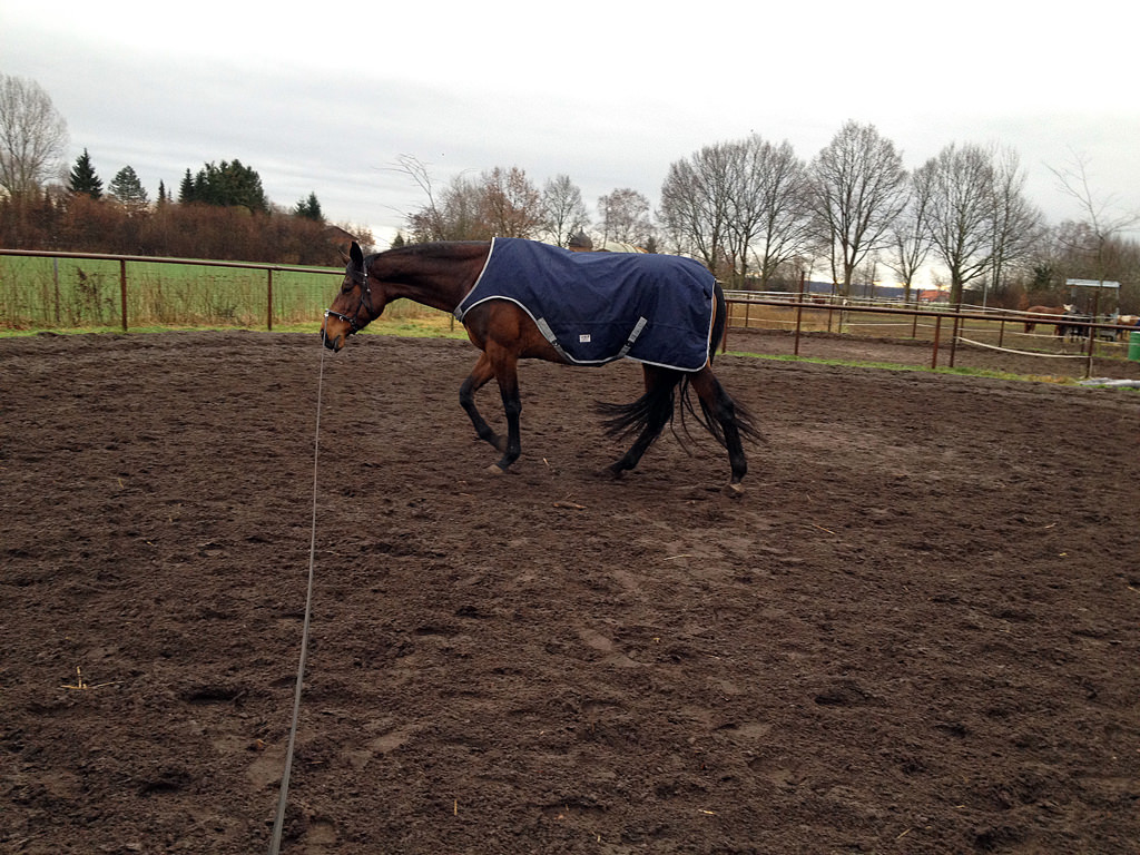 Markus war da und hat das Eisen wieder aufgenagelt. Außerdem habe ich eine Standpauke bekommen, dass ich ihn nicht gleich angerufen habe… (Ich würde es trotzdem wieder so machen. 🙂 Jeder hat das Recht auf ein paar ungestörte Stunden an solchen Festtagen!) Anschließend sind wir zum Training auf den Aussenplatz gegangen.