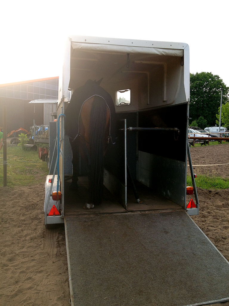 - Galdina ging mit beiden Vorderhuf willig auf die Rampe und mit leichtem Seilschwingen ging sie leicht stockend bis in den Anhänger